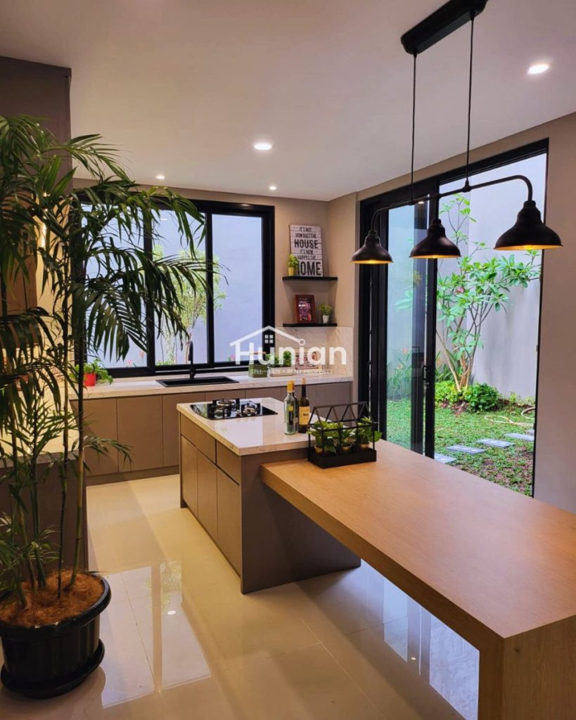 2 carport, Kitchen Set + Meja Makan Baru, Rumah asri dikelilingi taman, Ceiling tinggi, Full Kaca, Rumah dalam cluster ( dengan security one gate system ), Lingkungan asri penuh dengan penghijauan, Jalan lebar dan bebas banjir